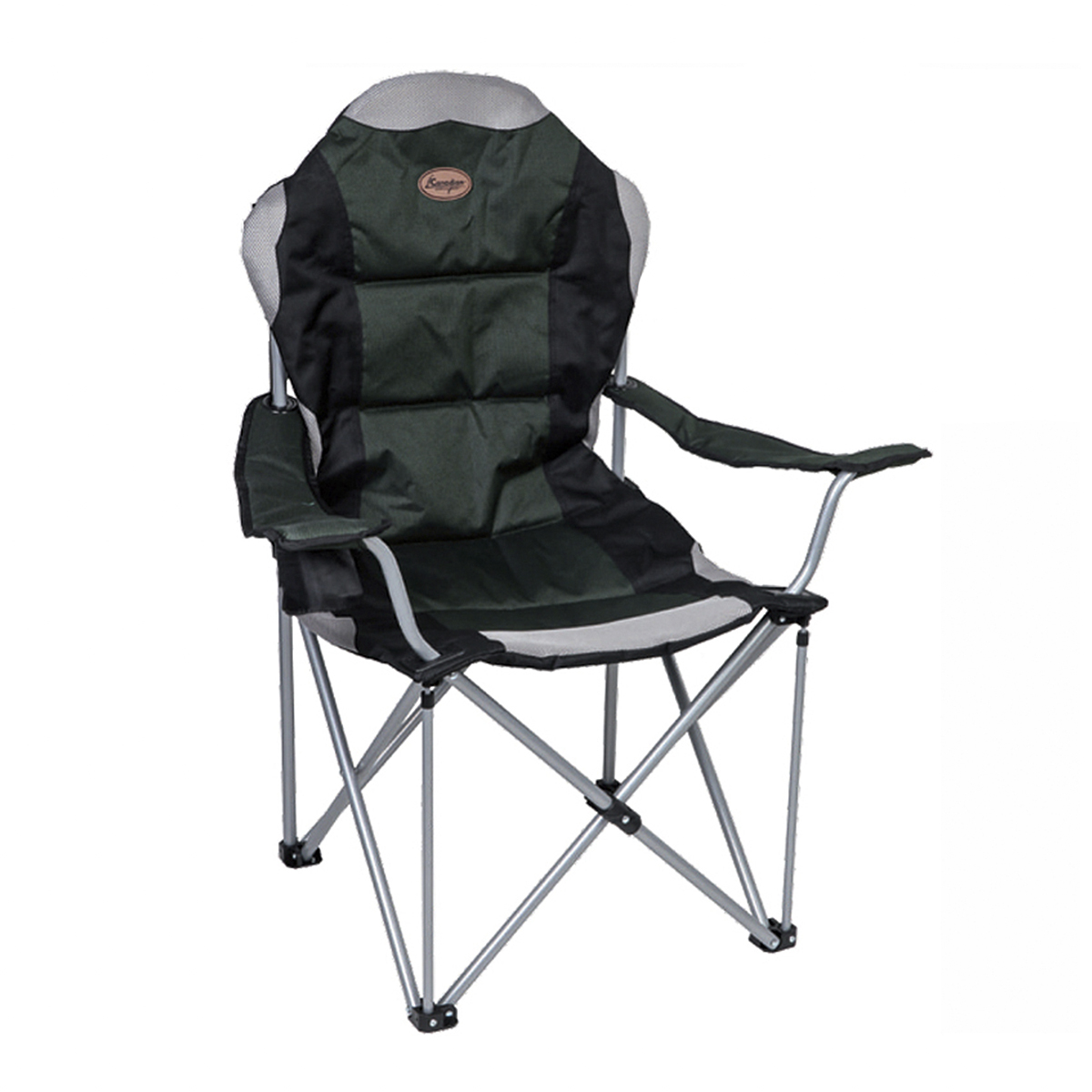 Подлокотники кресла выполнены из долговечной ткани 600D Polyester, в один из них встроена удобная подставка-термос для сохранения прохлады напитков. Для упрощения транспортировки и хранения изделие оснащено специальной сумкой-чехлом.