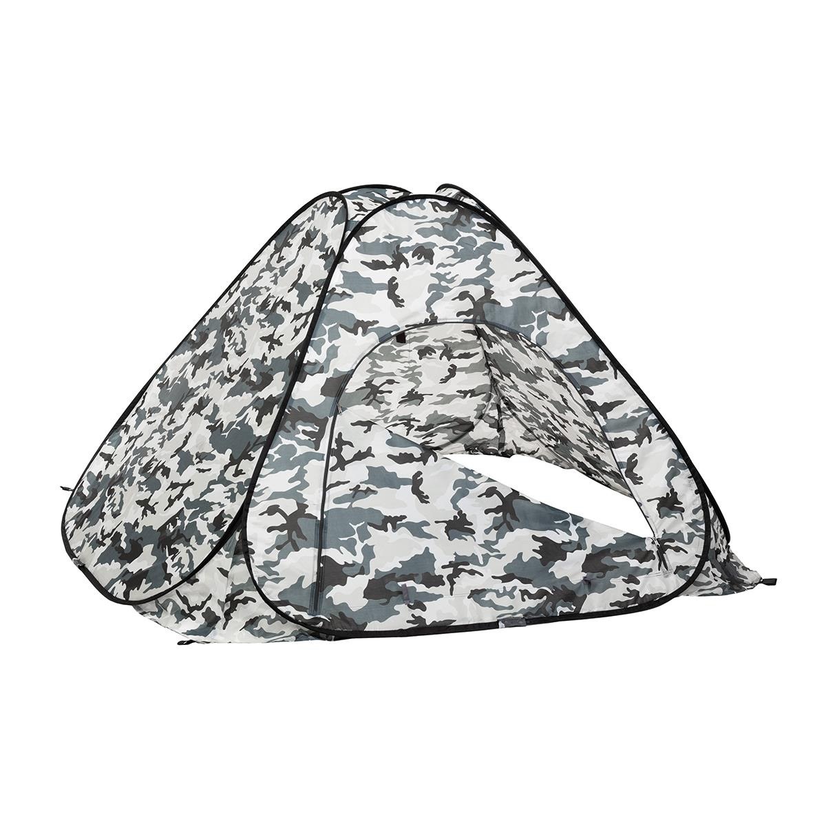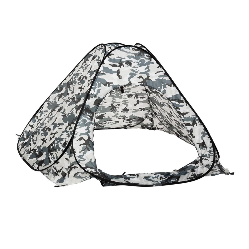 Отсутствие пола удобно для установки над любым количеством лунок в нужном вам расположении. По углам палатки сделаны петли под ввертыши, для надежного фиксирования на льду. Есть большое окно на замке, регулирующее микроклимат внутри. Вход в палатку закрывается двухсторонней молнией, что обеспечивает удобное закрытие и открытие входа. Светлые стенки палатки не нарушают освещенность при ловле в пасмурную погоду. Палатка мгновенно раскрывается и быстро складывается обратно в круглый чехол-переноску. Легкая и компактная, пригодна для частого использования.