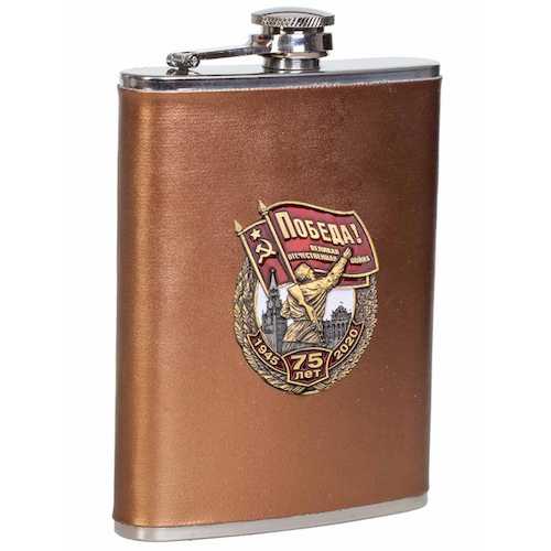 Фляжка 75 лет победы 250мл в кожаном оплете