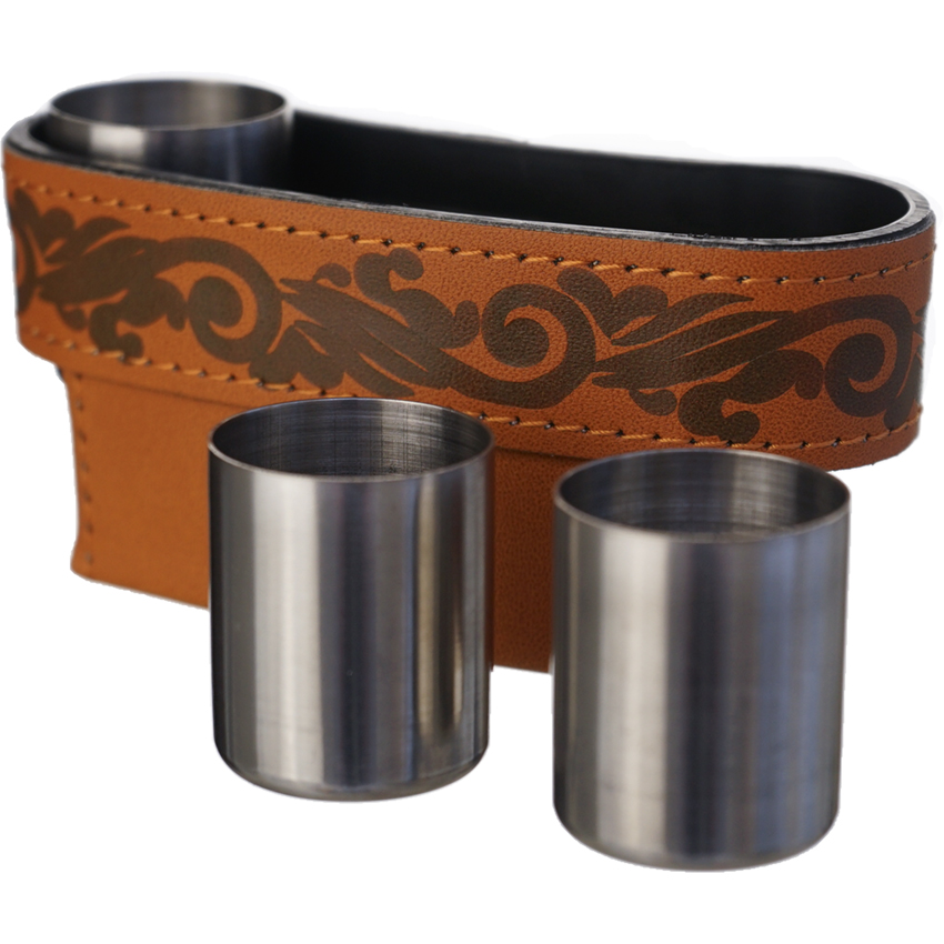 • Корпус фляжки и стопок украшены искуственной кожей с рисунком.