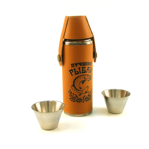 Фляжка Лучший рыбак 260мл в кожаном чехле (GT-9А)