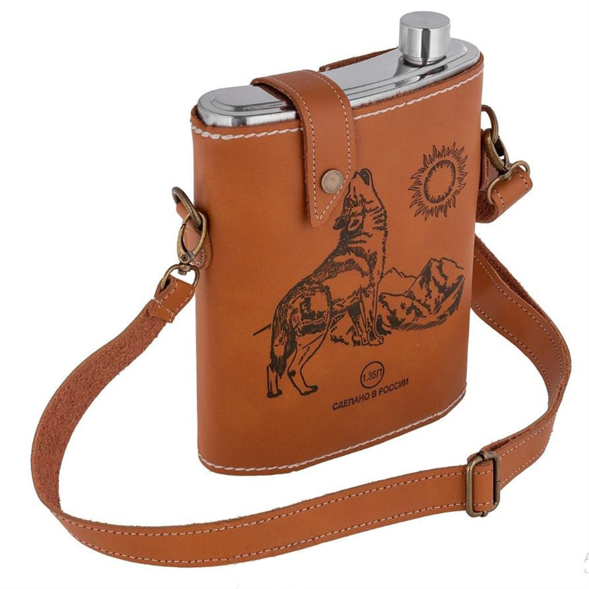 Фляжка GT Волк 1350мл в кожаном чехле (GT-2023-PT-48A)