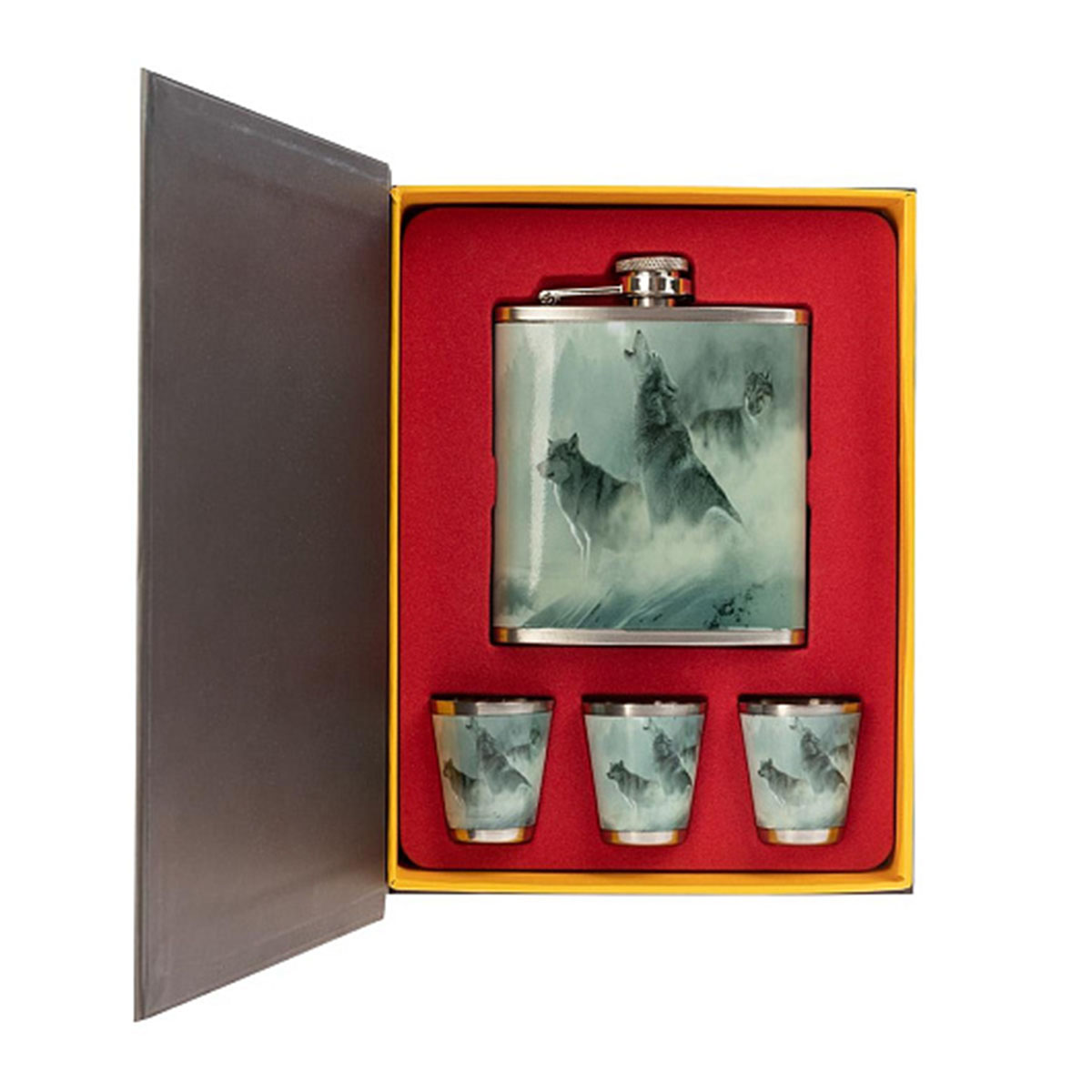 Набор Подарочный Helios Книга охотника Волки (фляжка 210мл+3 стопки) (HS-KO-W-A19)