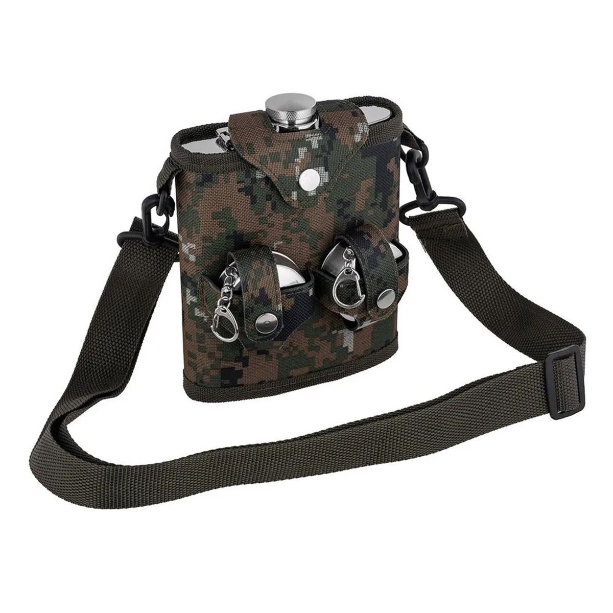 Продуманная комплектация позволяет брать любимый напиток на природу и сразу делиться с напарником: фляга из нержавеющей стали защищена чехлом с наплечным ремнем, а два складных стакана удобно размещены внутри. Компактные габариты делают набор удобным для переноски и хранения в рюкзаке или бардачке авто.