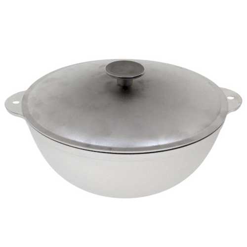 Казаны сделаны из пищевого сплава алюминия с кремнием. Данный состав гигиеничен и придает пище полезные свойства. И к тому же обладает повышенной жаропрочностью.