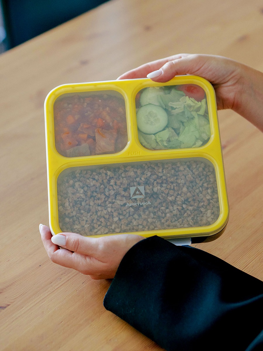 Используйте плоский ланч-бокс «Арктика» каждый день: с ним удобно организовать полноценный рацион и рассчитывать граммовку порций, брать с собой в дорогу или на пикник нарезку, мягкие фрукты, ягоды или орехи. При необходимости ланч-бокс можно разогревать в микроволновой печи, мыть в посудомоечной машине (без крышки), а также хранить в холодильнике. Ланч-бокс «Арктика» изготовлен из проверенных пищевых материалов, полностью безопасных для здоровья и не выделяющих вредные бисфенолы (BPA free).