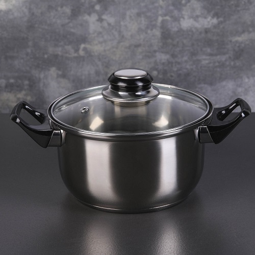 Кастрюля 1,5л Доляна Черный ночь, стеклянная крышка