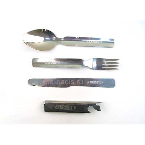 Набор столовых приборов Следопыт (ложка, вилка, нож, открывашка) в металл. чехле