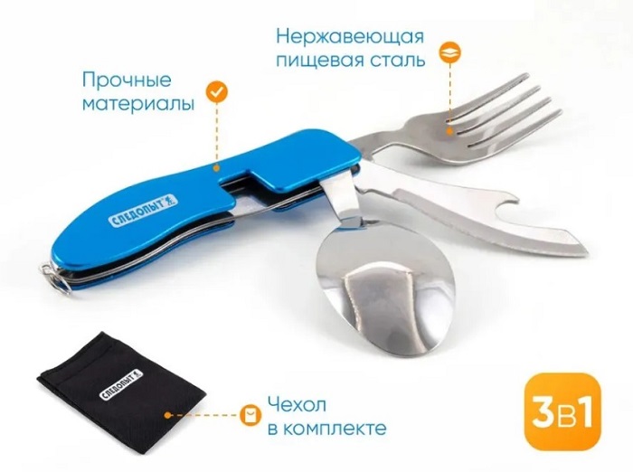 Набор столовых приборов Следопыт складной (ложка, вилка, открывашка) в чехле