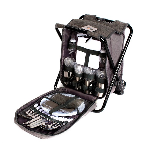 Набор TWPB-3111V286 для пикника, на 4 персоны, с табуретом (посуда-пластик, кружки-металл, изотермический отдел)