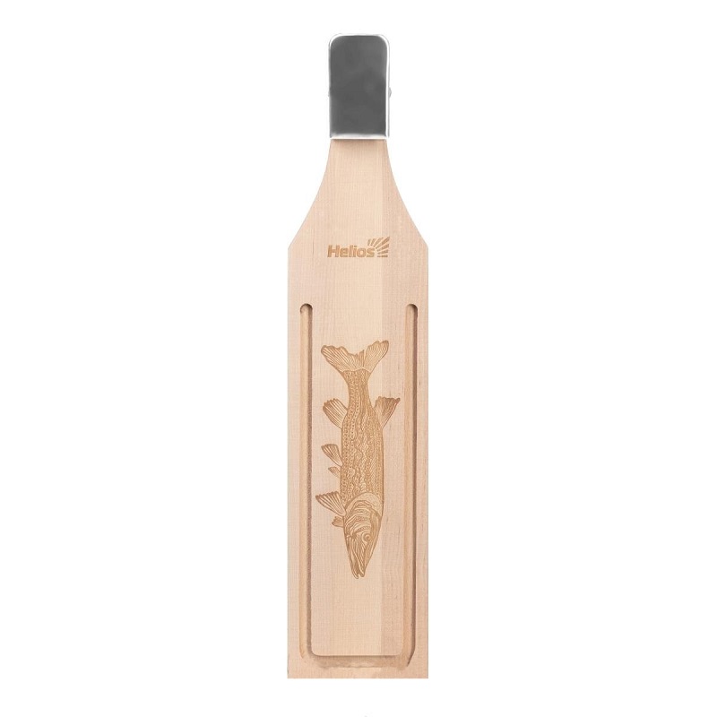 Доска для разделки рыбы Helios Щука 500х150х60мм с металлическим зажимом