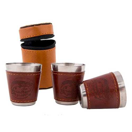 Стопки Helios За богатый улов 30мл в чехле, нержавейка, обклеены кожей (3шт) (HS-A17-30)