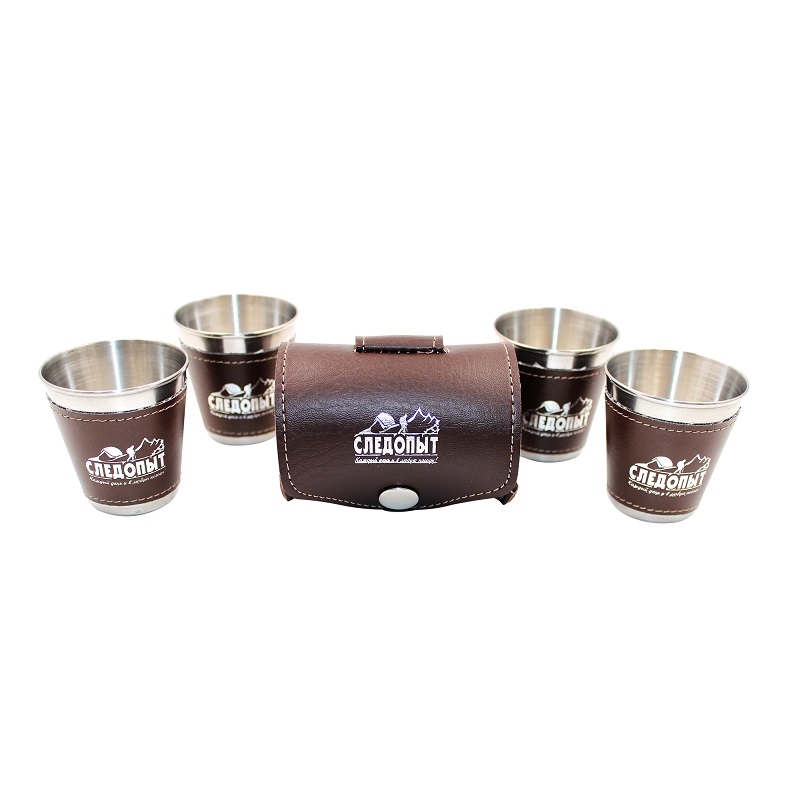 Стопки Следопыт 60мл в чехле и кожаном оплете, нержавейка (4шт)
