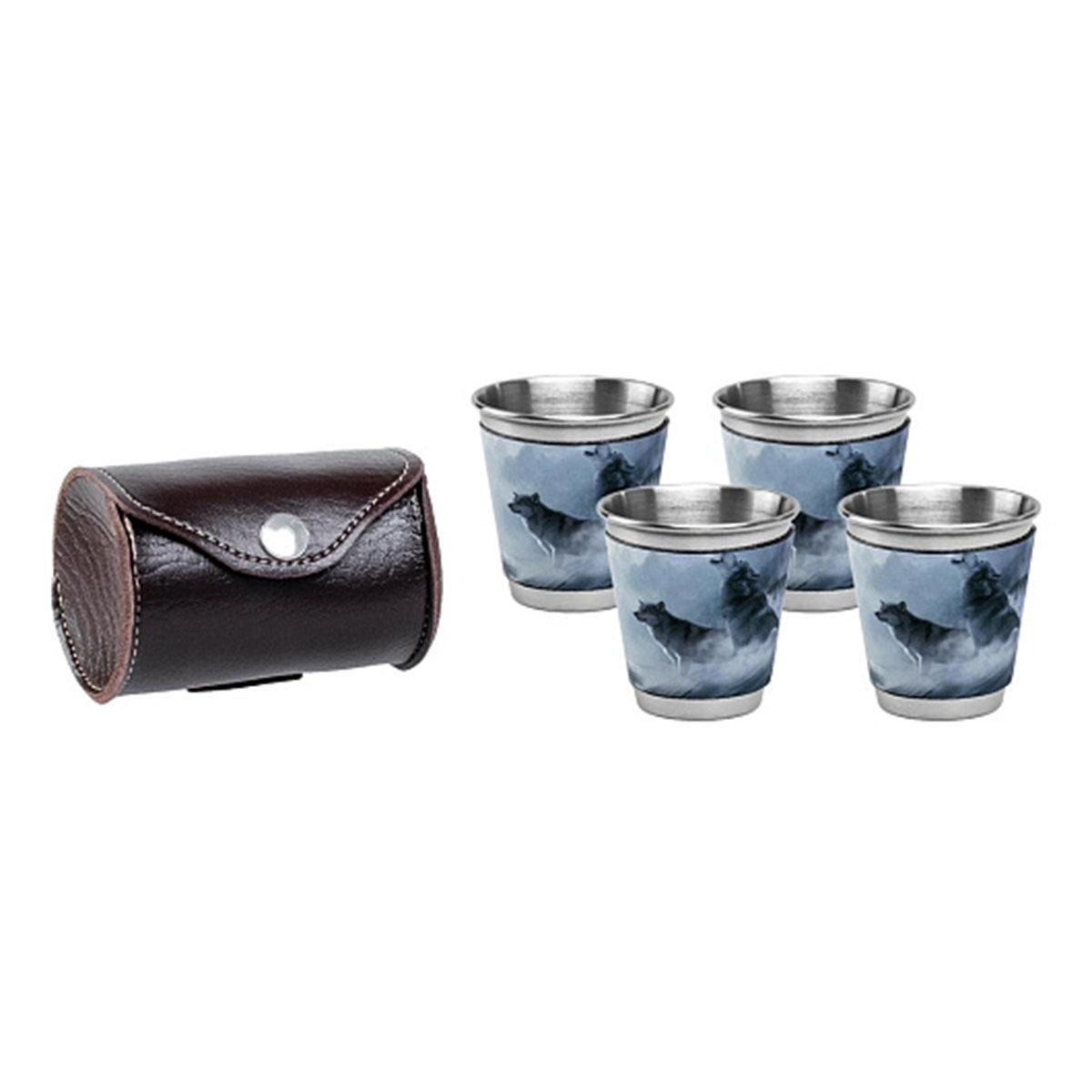 Стопки Helios Волки 60мл в чехле, нержавейка (4шт) (HS-NS-W-A19-2)