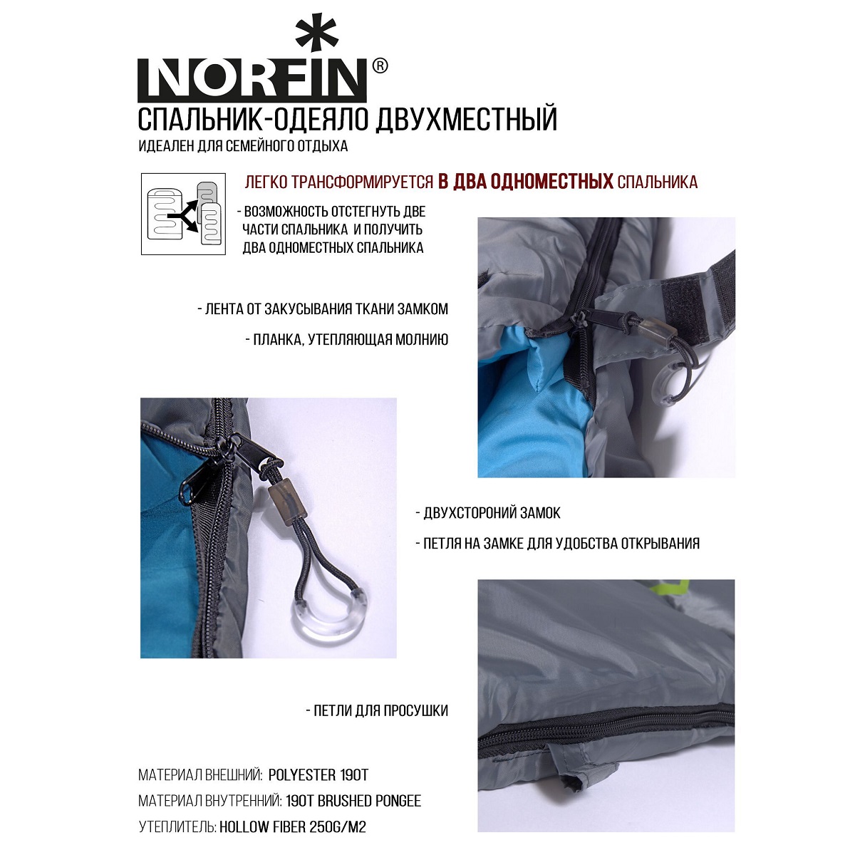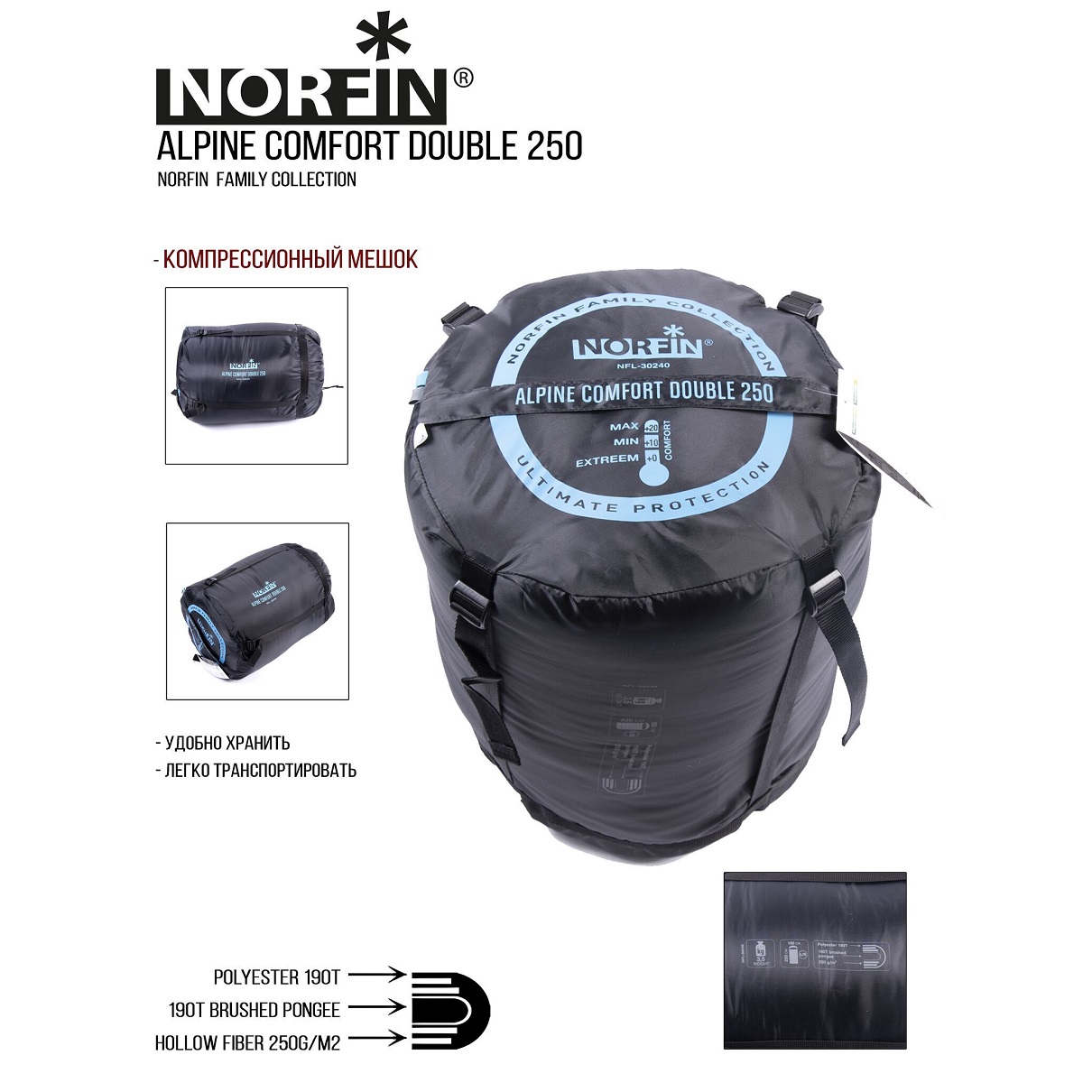 Спальный мешок-одеяло Norfin Alpine Comfort Double 250 (до -0С)