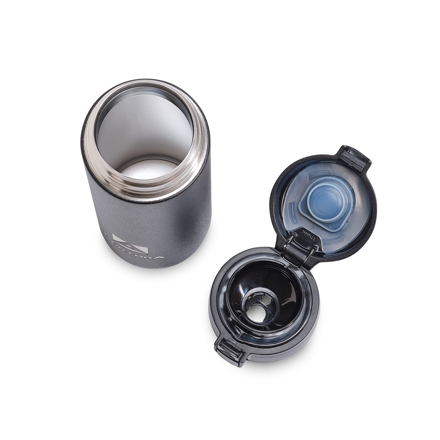 Удобно открывать с помощью кнопки даже одной рукой, так что можно пить на ходу, не теряя ни минуты. При этом фиксатор не даст крышке открыться самостоятельно, а сама крышка полностью закрывает питьевой носик от попадания грязи и пыли. Корпус выполнен из долговечной и прочной нержавеющей стали, питьевая система – из экологичного и безопасного для здоровья пищевого пластика (BPA free).