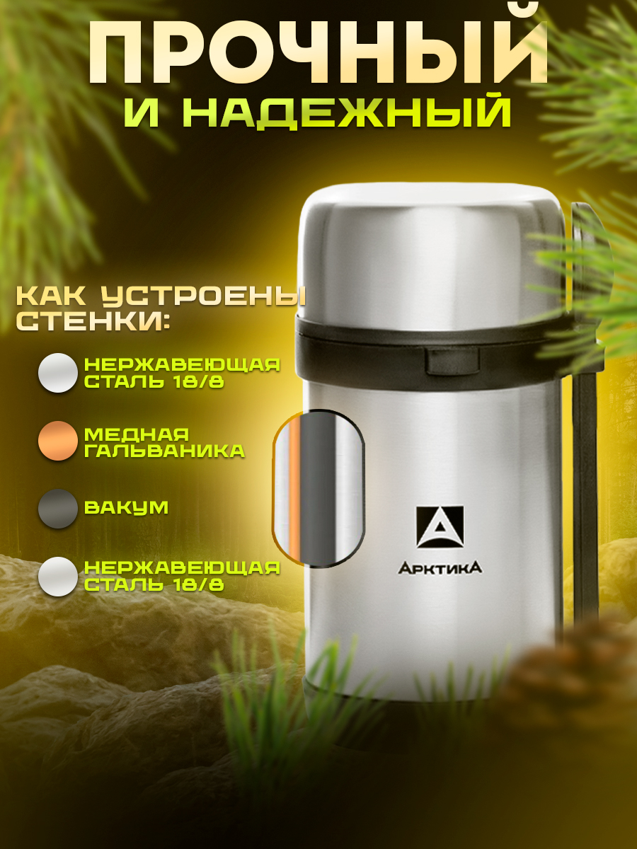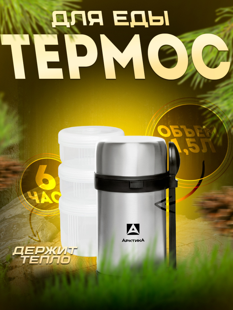 Термос Арктика 403 для еды с 3-мя контейнерами 1500мл (вилка, ложка, крышка-тарелка)