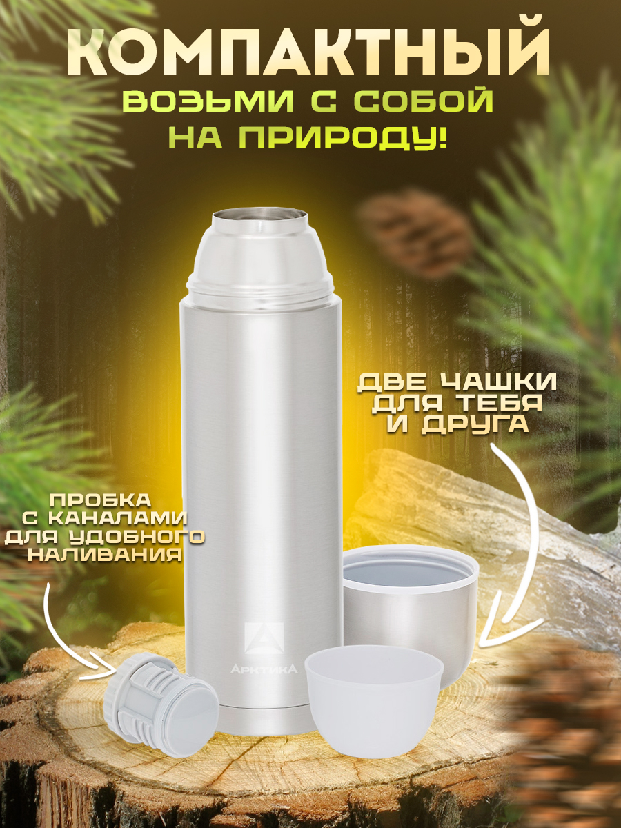 Удобные каналы для налива на пробке позволяют безопасно наливать напиток в крышку-чашку без расплескивания. В комплекте есть дополнительная чашка для напитка, которой можно поделиться с другом.