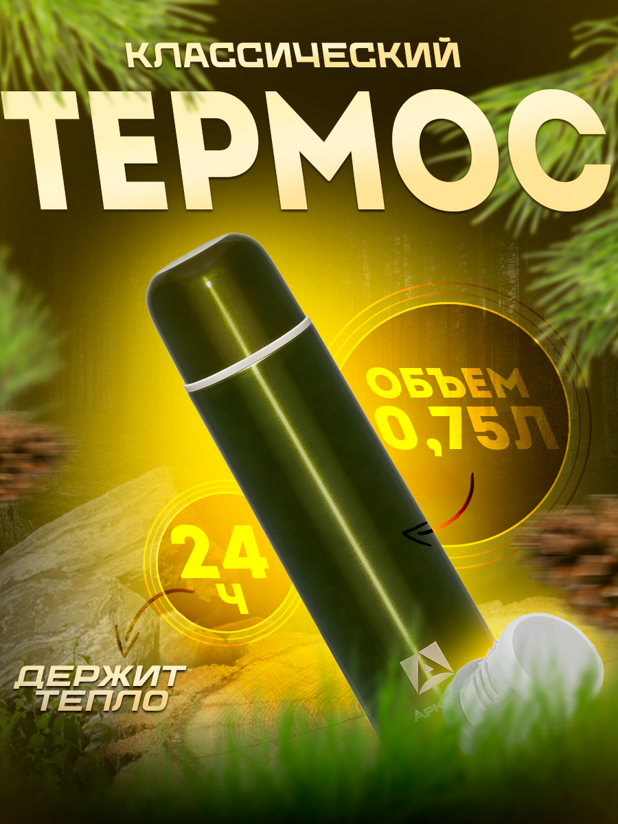 Термос Арктика 102 узкое горло, болотный 750мл