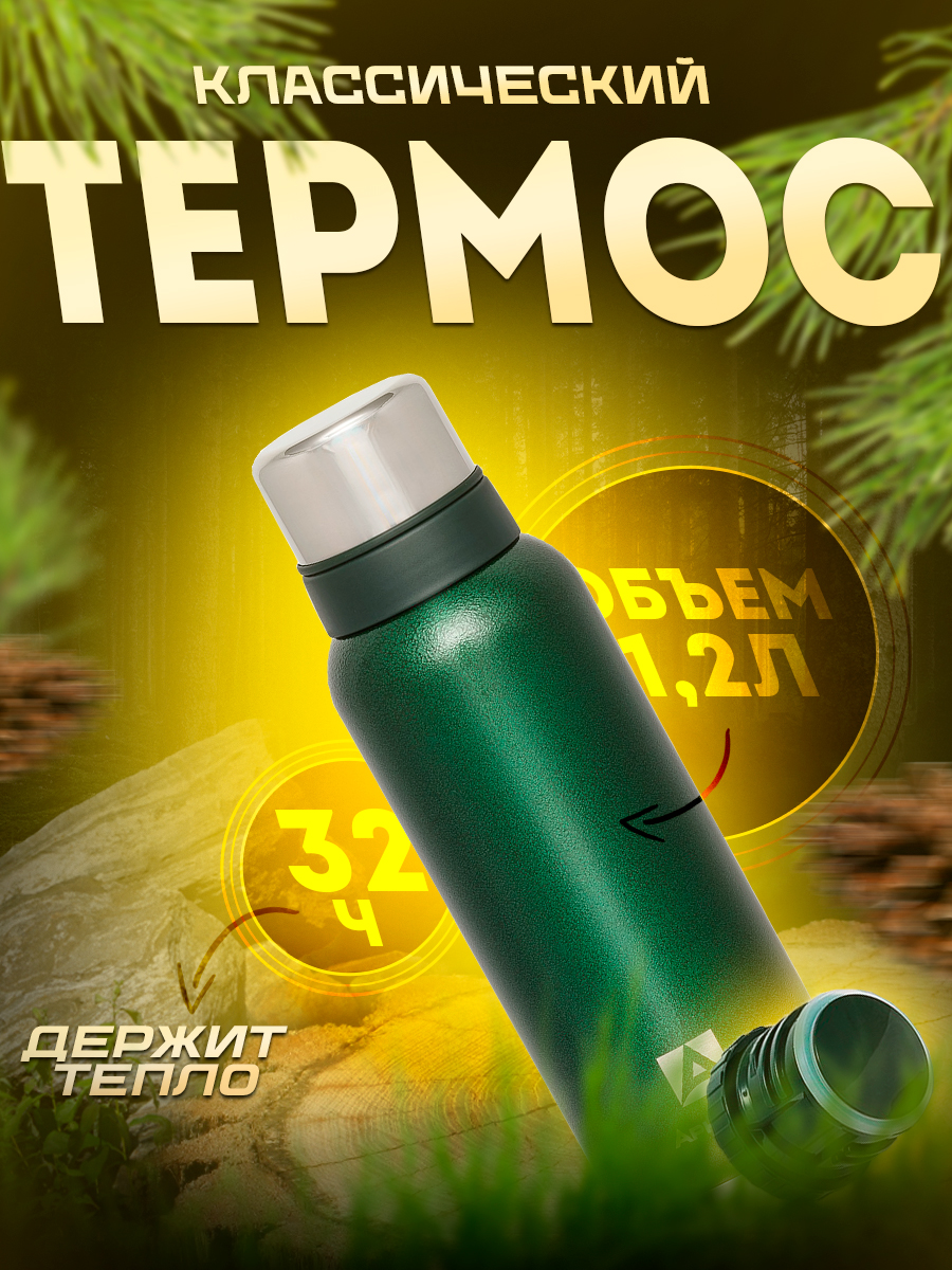 Термос Арктика 106 1200мл узкое горло (2 чашки) зеленый