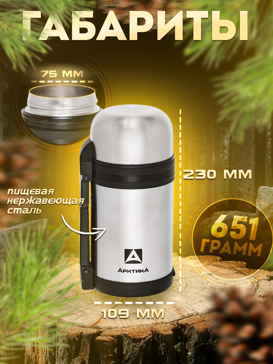 Термос Арктика 201 универсальное горло 1000мл с ручкой