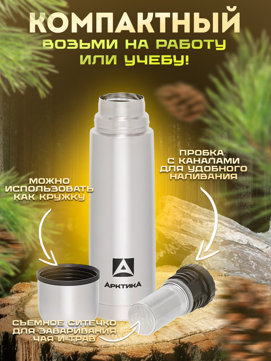 Термос Арктика 101С узкое горло, с ситечком 1000мл