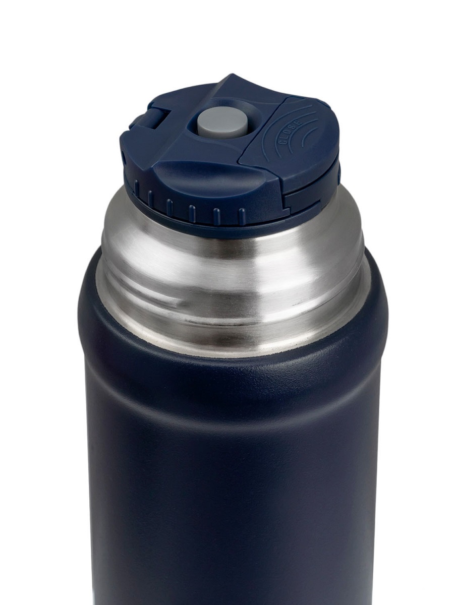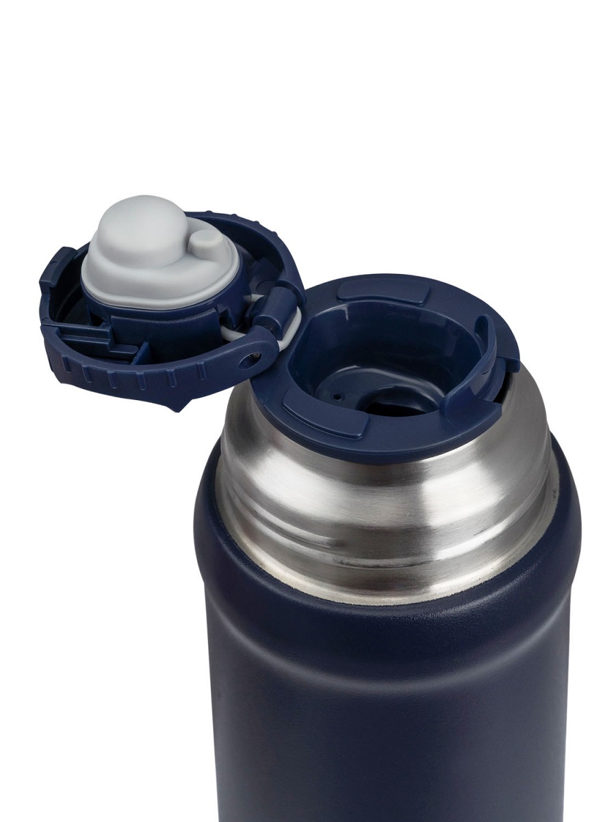 Открывайте термос одним движением на 180°. Для горячих напитков предусмотрена полностью стальная крышка-чашка с двойными стенками, не обжигающая руки. Чтобы освежиться, используйте встроенную питьевую систему и пейте без использования чашки. Будьте осторожны: чтобы не обжечься, перед тем как пить прямо из термоса, убедитесь, что напиток внутри комфортной для питья температуры.