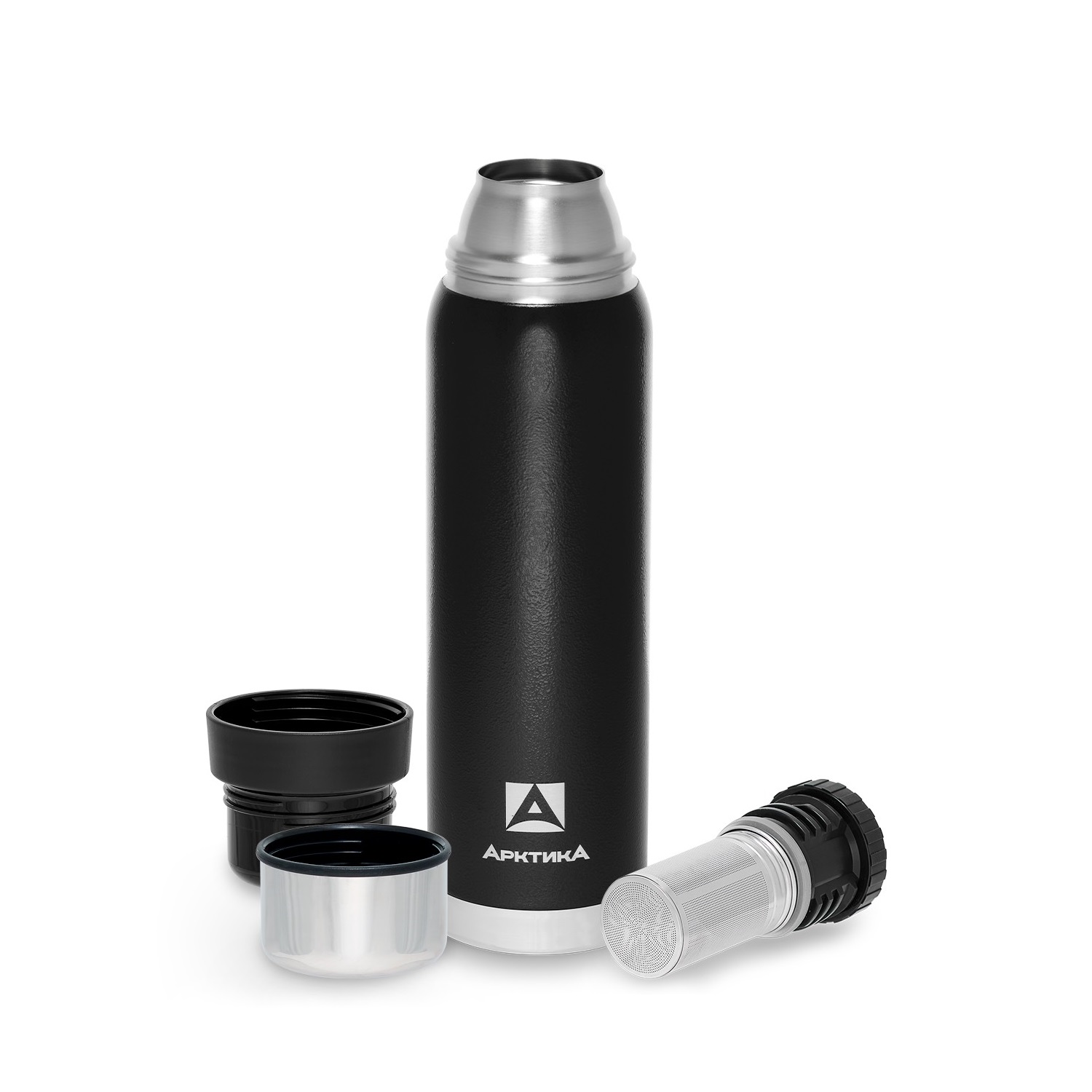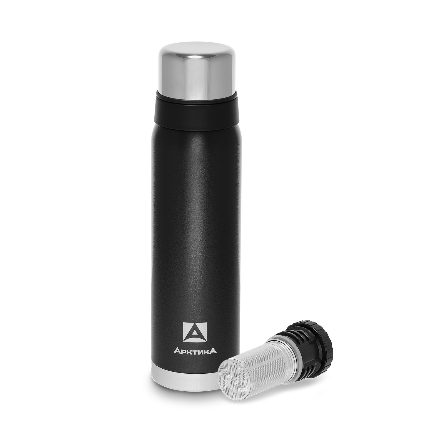 Термос Арктика 106С узкое горло, с ситечком, черный 900мл