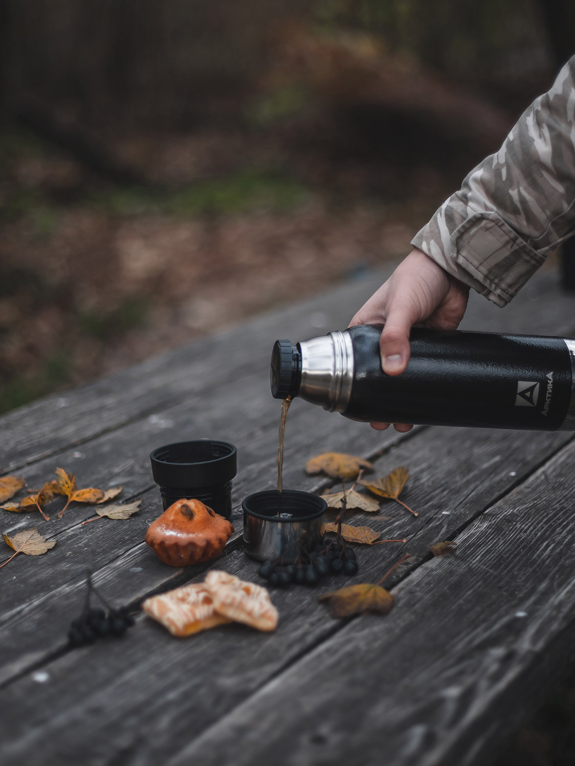В комплекте 2 чашки – для себя и друга. Термос покрыт антивандальной молотковой эмалью и имеет улучшенные показатели удержания тепла, так что готов отправиться с вами в самое дальнее путешествие. Выполнен из долговечной пищевой нержавеющей стали.