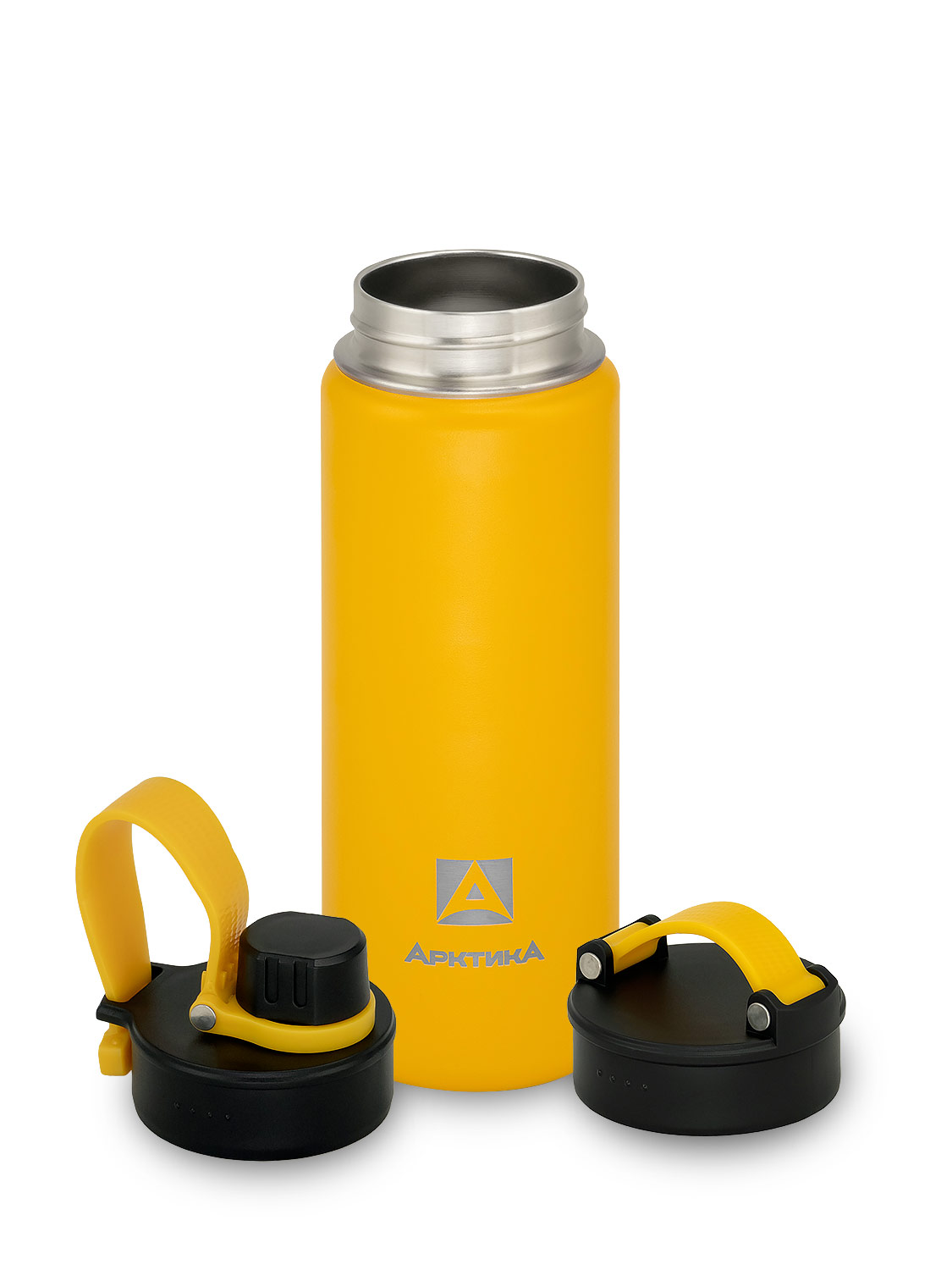 Термос Арктика 708S с текстурным покрытием желтый 530мл с дополнительной пробкой, с питьевой системой
