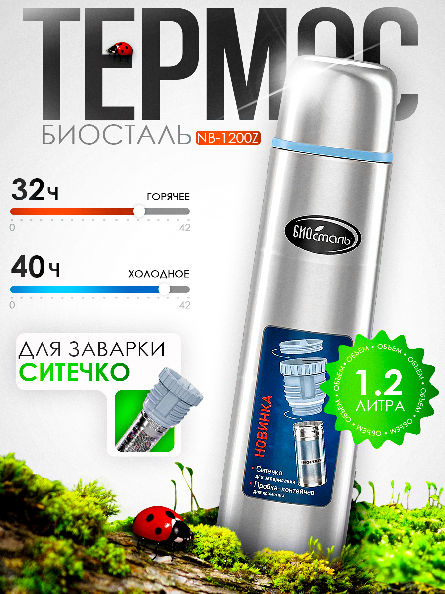 Термос Biostal NB-1200Z 1200мл пробка с ситечком, узкое горло
