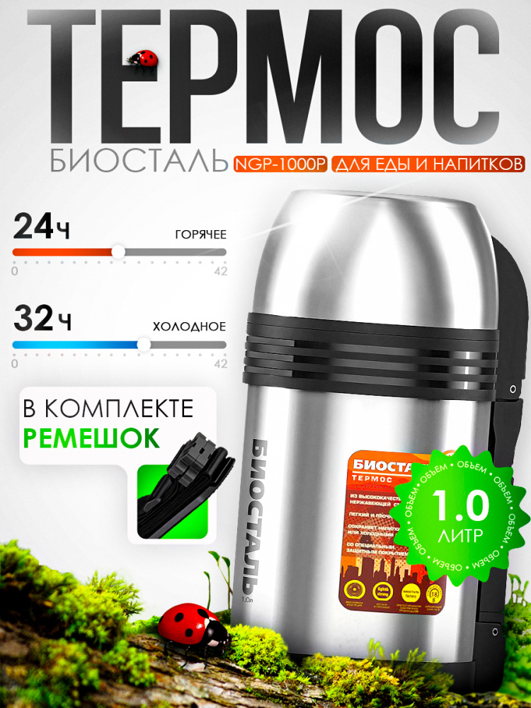 Термос Biostal Спорт NGP-1000P 1,0л (универсальный, ручка)