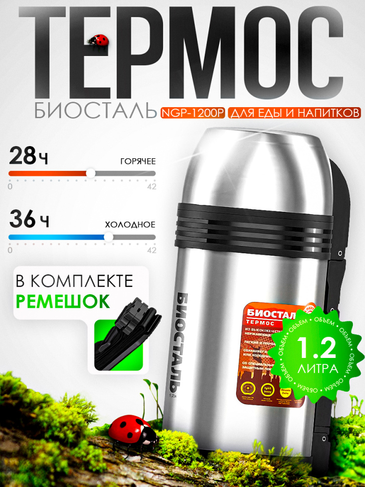 Термос Biostal Спорт NGP-1200P 1,2л (универсальный, ручка)