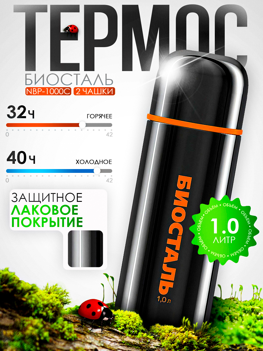 Термос Biostal Спорт NBP-1000C 1000мл узкое горло (2 чашки) черный