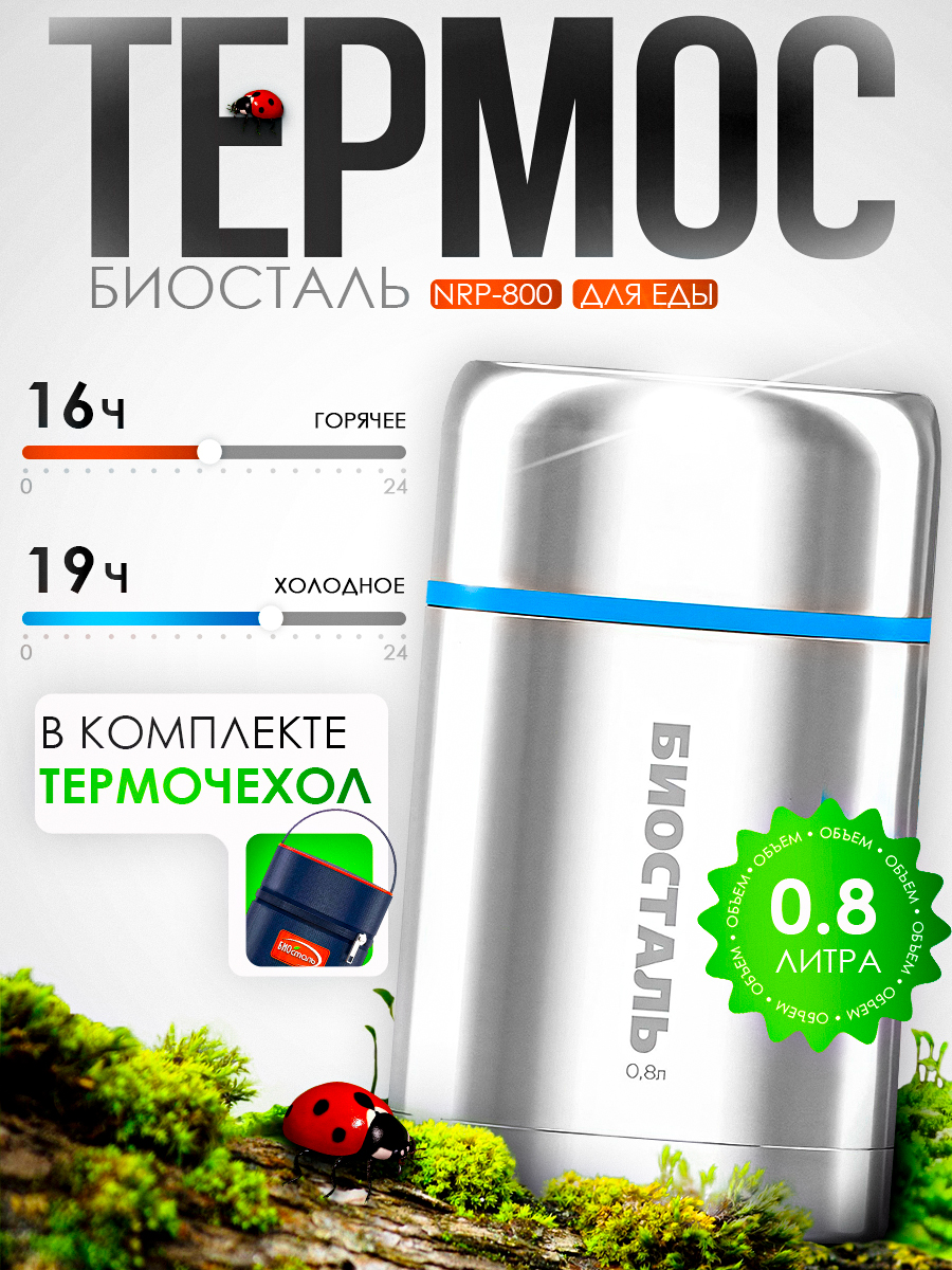 Термос Biostal Авто NRP-800 800мл для еды, широкое горло, в термочехле