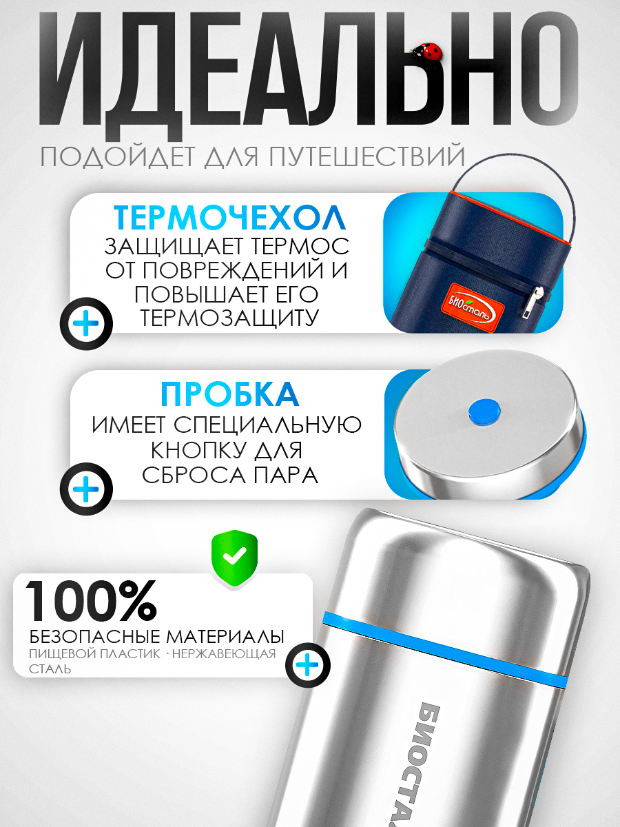 Термос Biostal Авто NRP-800 0,8л (широкое горло, термочехол)