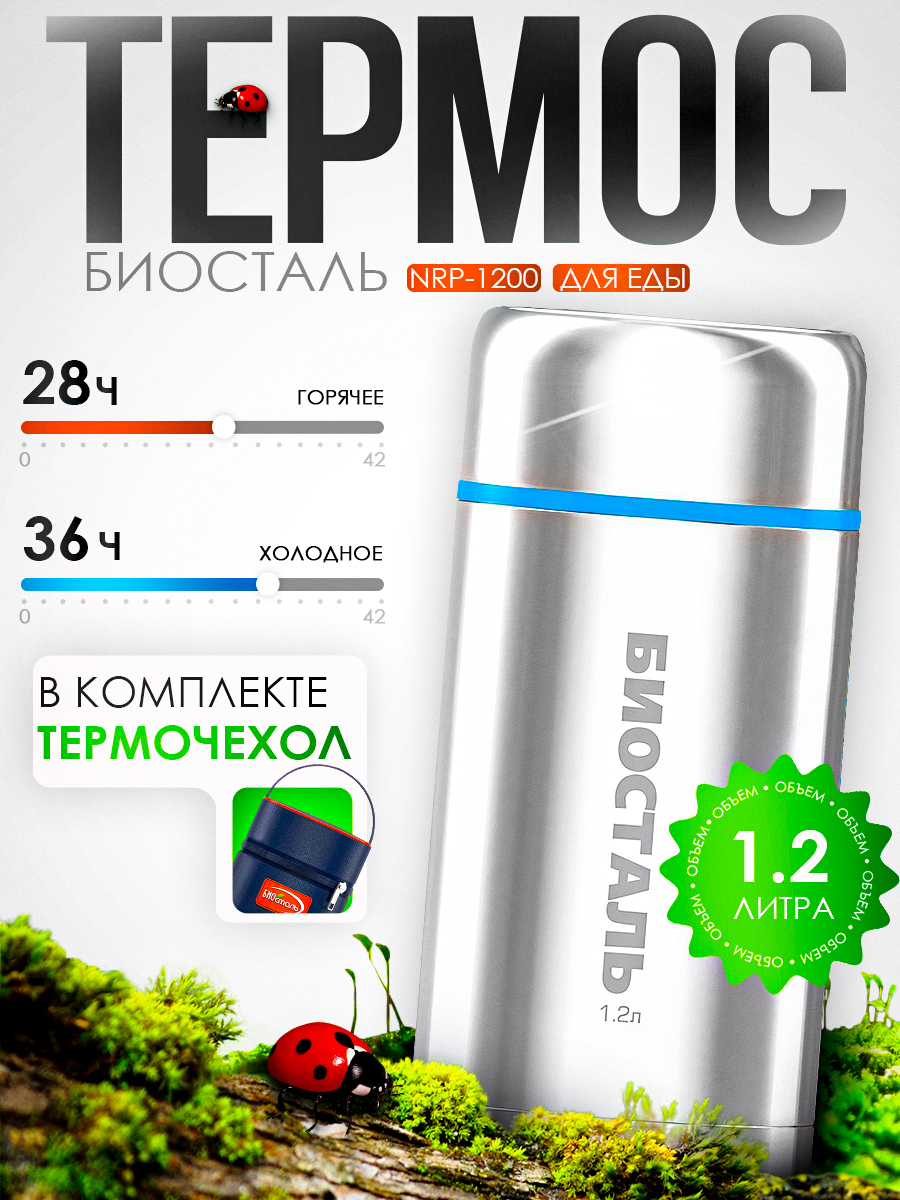 Термос Biostal Авто NRP-1200 1200мл для еды, широкое горло, в термочехле