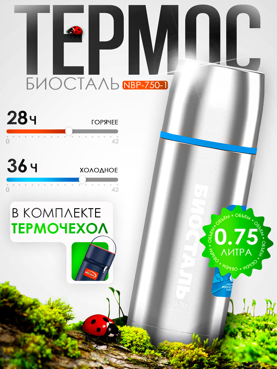 Термос Biostal Авто NBP-750-1 750мл узкое горло (2 чашки) в термочехле