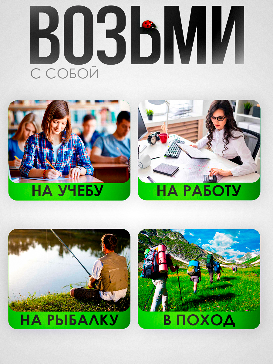 Термос имеет складную ручку на корпусе и ремешок для переноски.