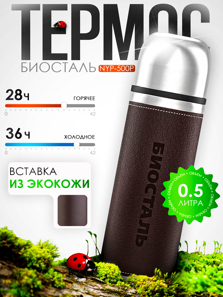 Термос Biostal Охота NYP-500P 500мл узкое горло, кожаная оплетка