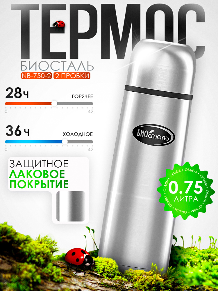 Термос Biostal NB-750-2 0,75л (узкое горло, 2 пробки)