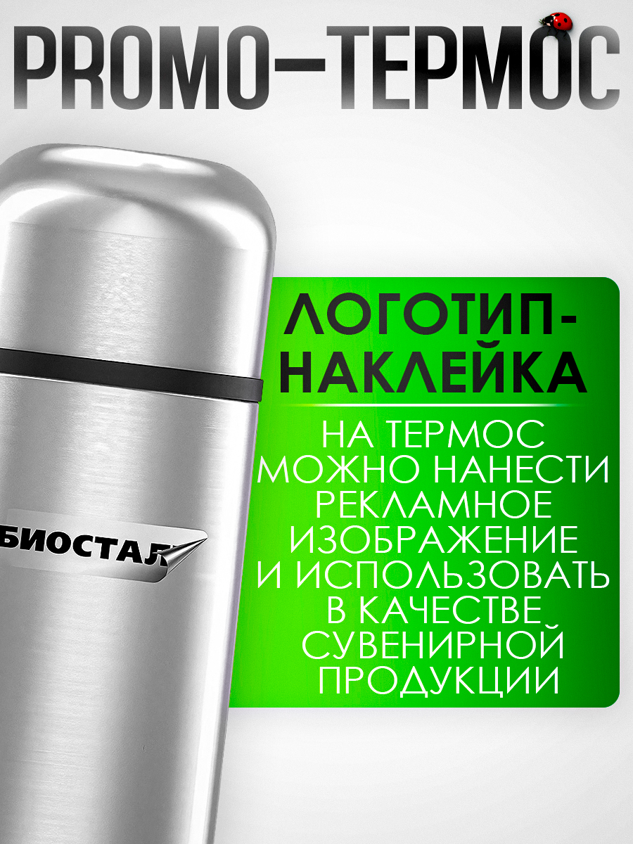 Прозрачная наклейка логотипа легко удаляется и на термос можно нанести рекламное изображение и использовать в качестве сувенирной продукции.