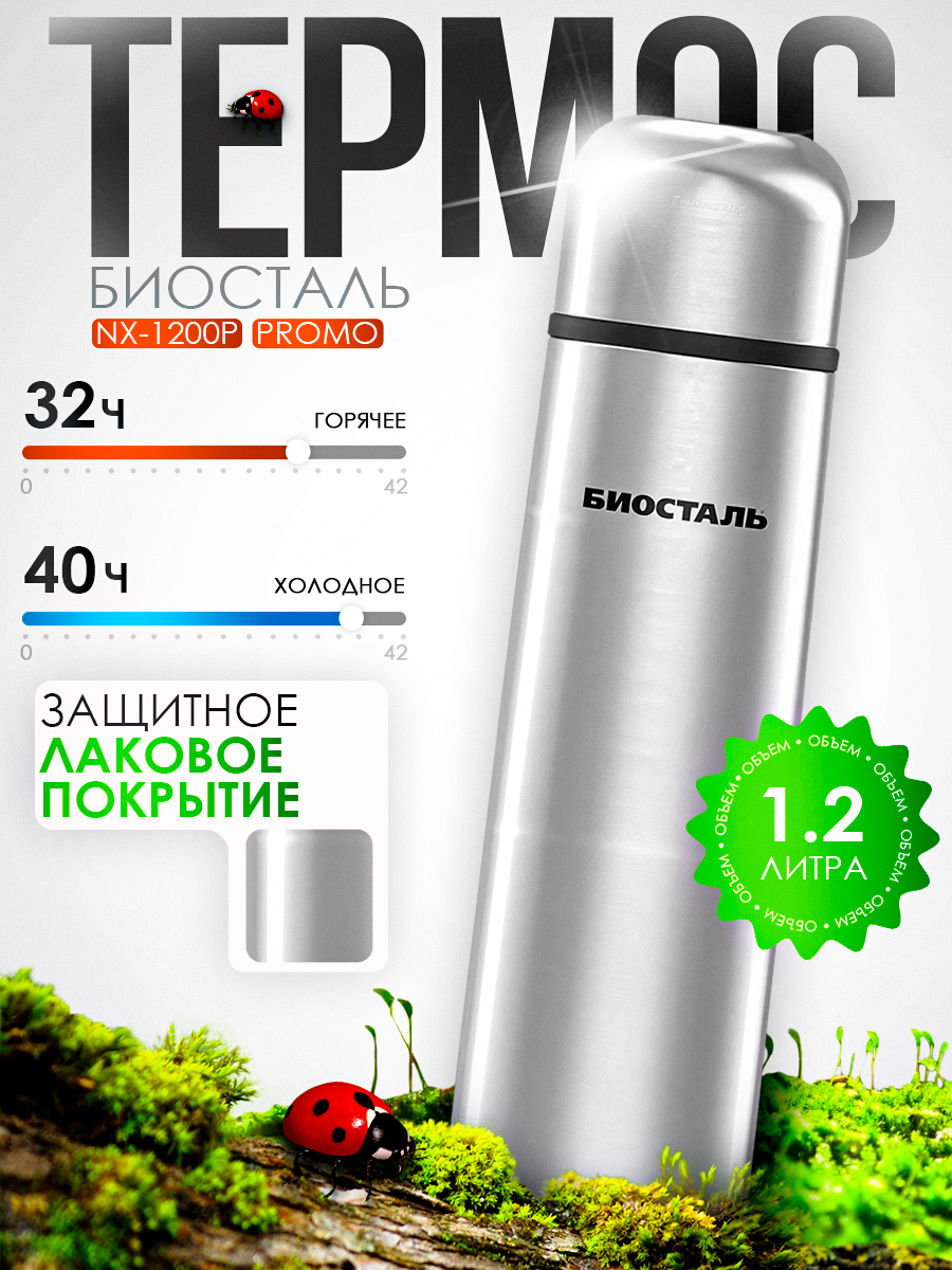 Термосы изготовлены из высококачественной нержавеющей стали 18/8 (AISI 304), комплектуются пробкой без кнопки с дополнительной изоляцией и функцией «термоконтроль», что позволяет наливать напитки без полного откручивания пробки под любым углом.