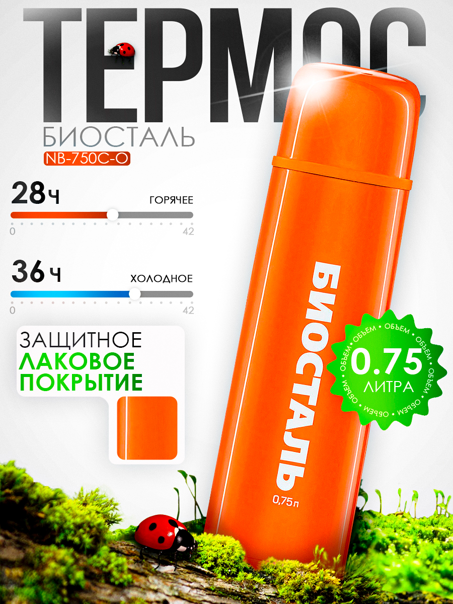 Термос Biostal NB-750 С-O 750мл узкое горло, оранжевый