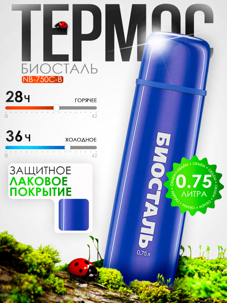 Термос Biostal NB-750 С-B 0,75л (узкое горло, с кнопкой) цвет синий