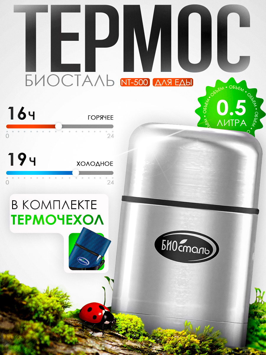 Термос Biostal NT-500 500мл для еды, широкое горло, в чехле