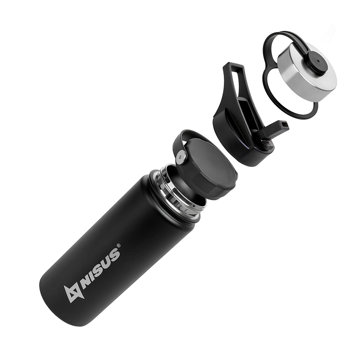 Термобутылка Nisus SW-18-B с 3-мя сменными крышками 530мл черная