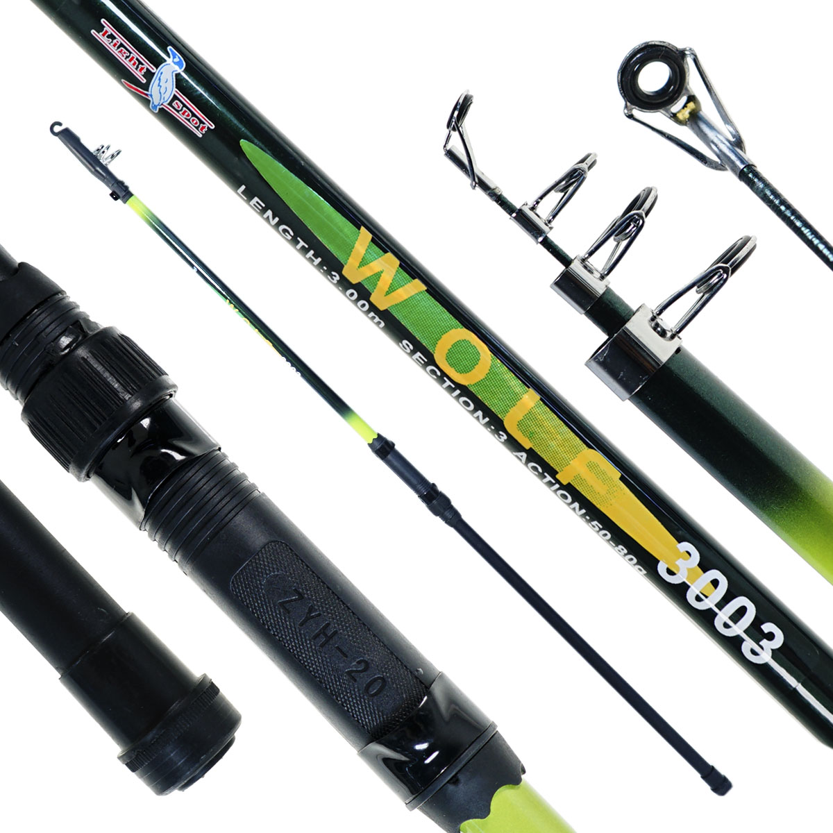 Удилище Akara Wolf телескопическое 3м 50-80гр, стеклопластик, с кольцами