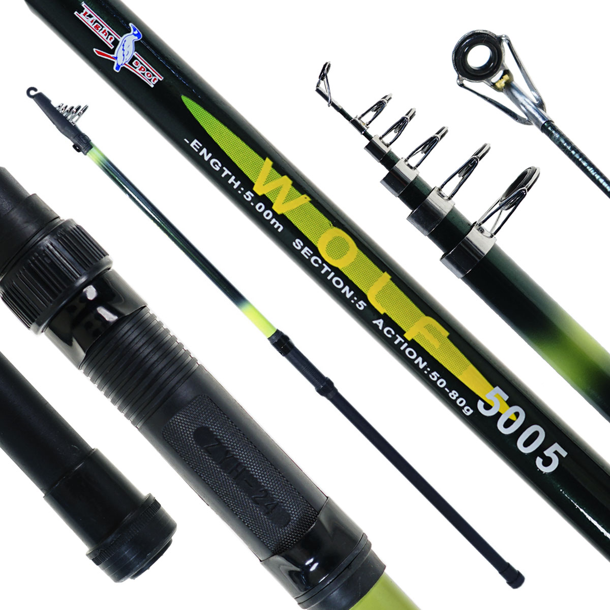 Удилище Akara Wolf телескопическое 5м 50-80гр, стеклопластик, с кольцами