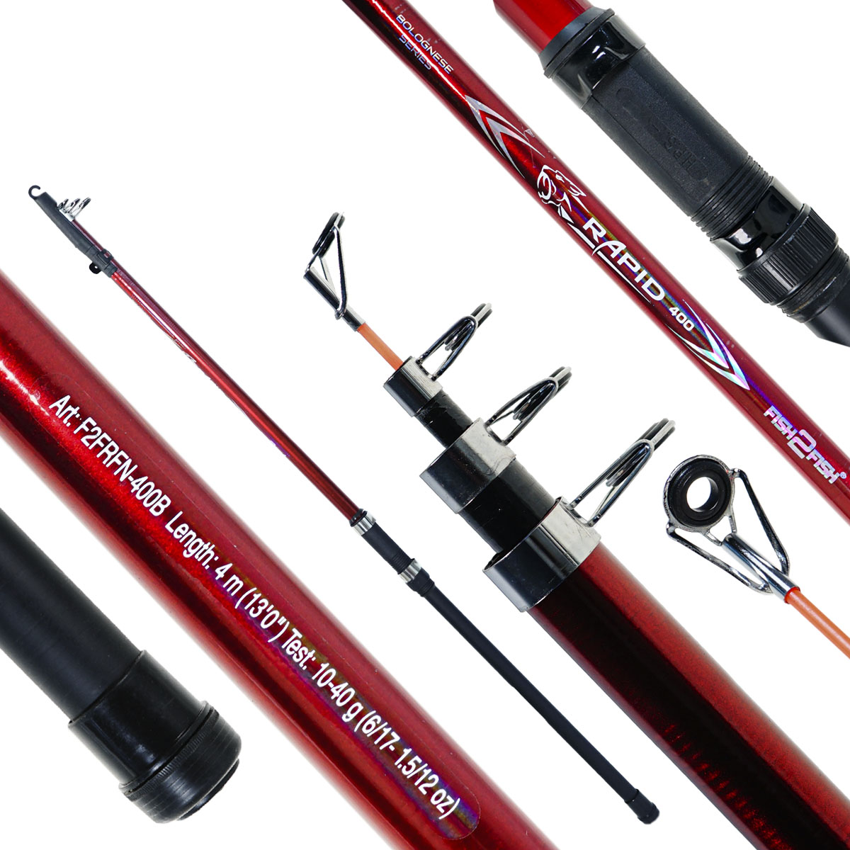 Удилище Fish2Fish Rapid Fiberglas телескопическое 4м 10-40гр, стеклопластик, с кольцами